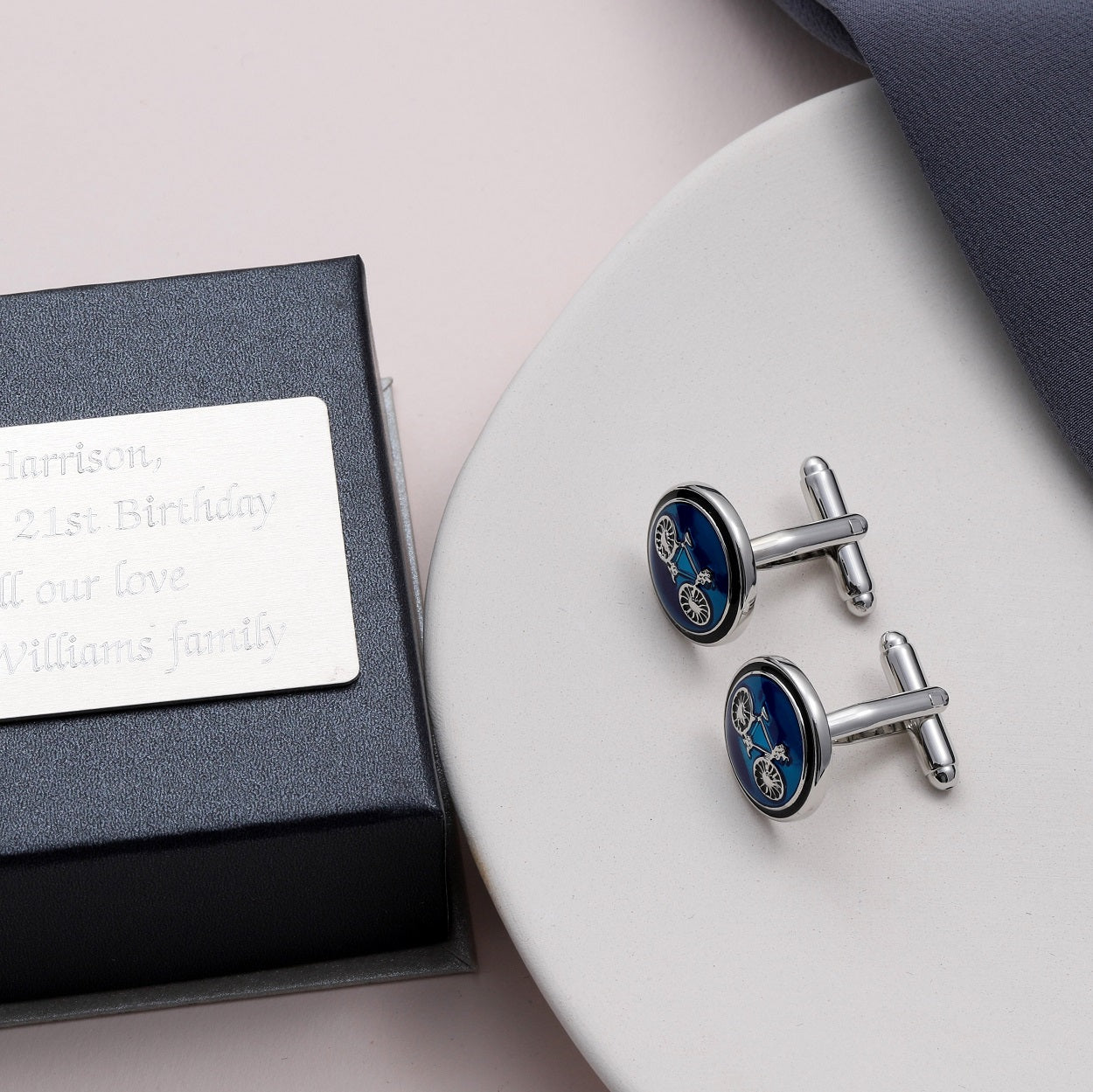 Lovely hand painted bicycle cuff links. Perfect to add a pop of colour.