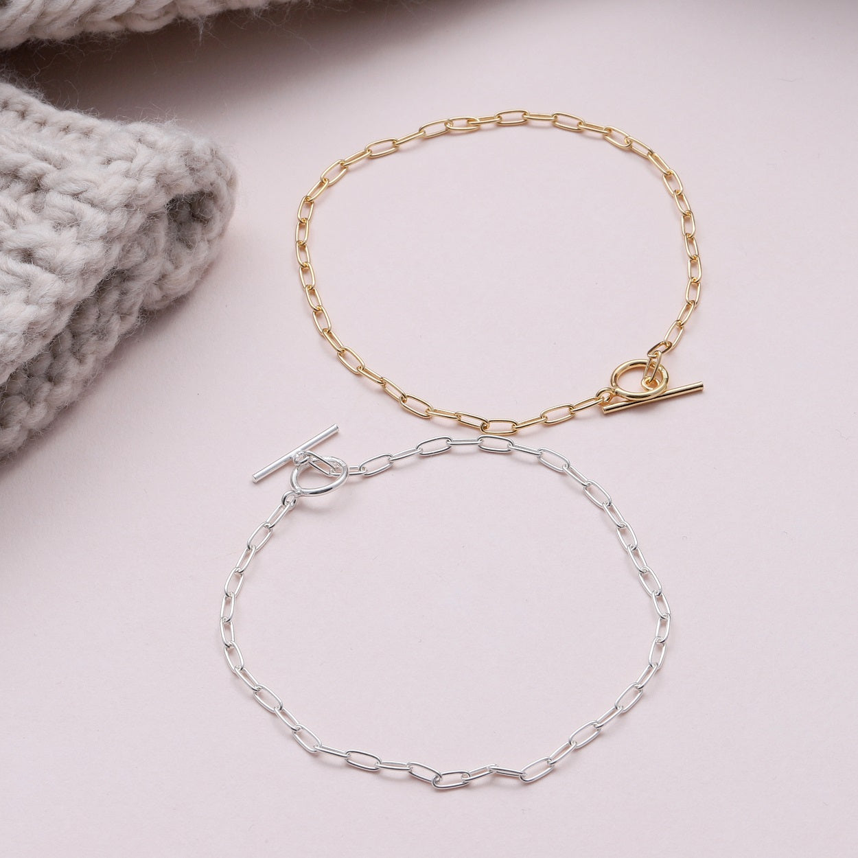 A simple but stunning linked bracelet with a T bar and Ring clasp