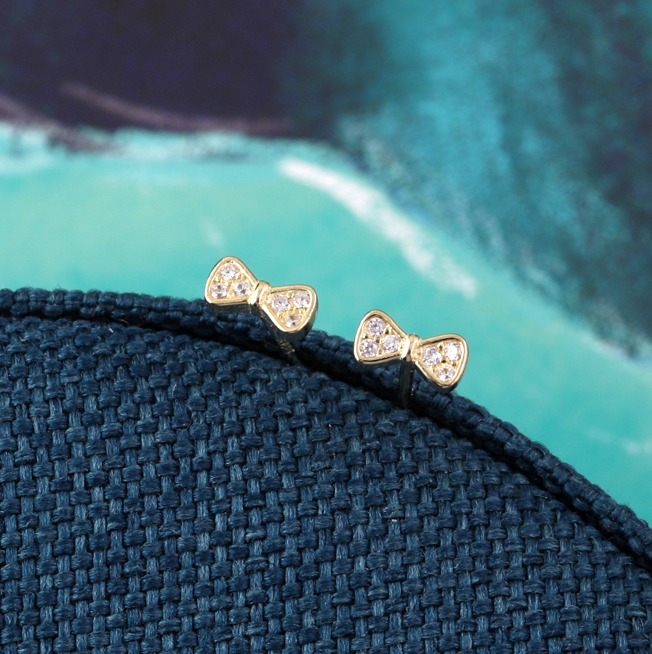 Our Crystal Bow Stud Earrings are the perfect blend of elegance and cuteness. Made from sterling silver, these dainty earrings feature adorable crystal bows that add a touch of sparkle to any outfit. Available in silver and gold, these earrings are perfect to pair with other jewellery. Great for pairing with other earrings in a stack and for wearing to work or school.