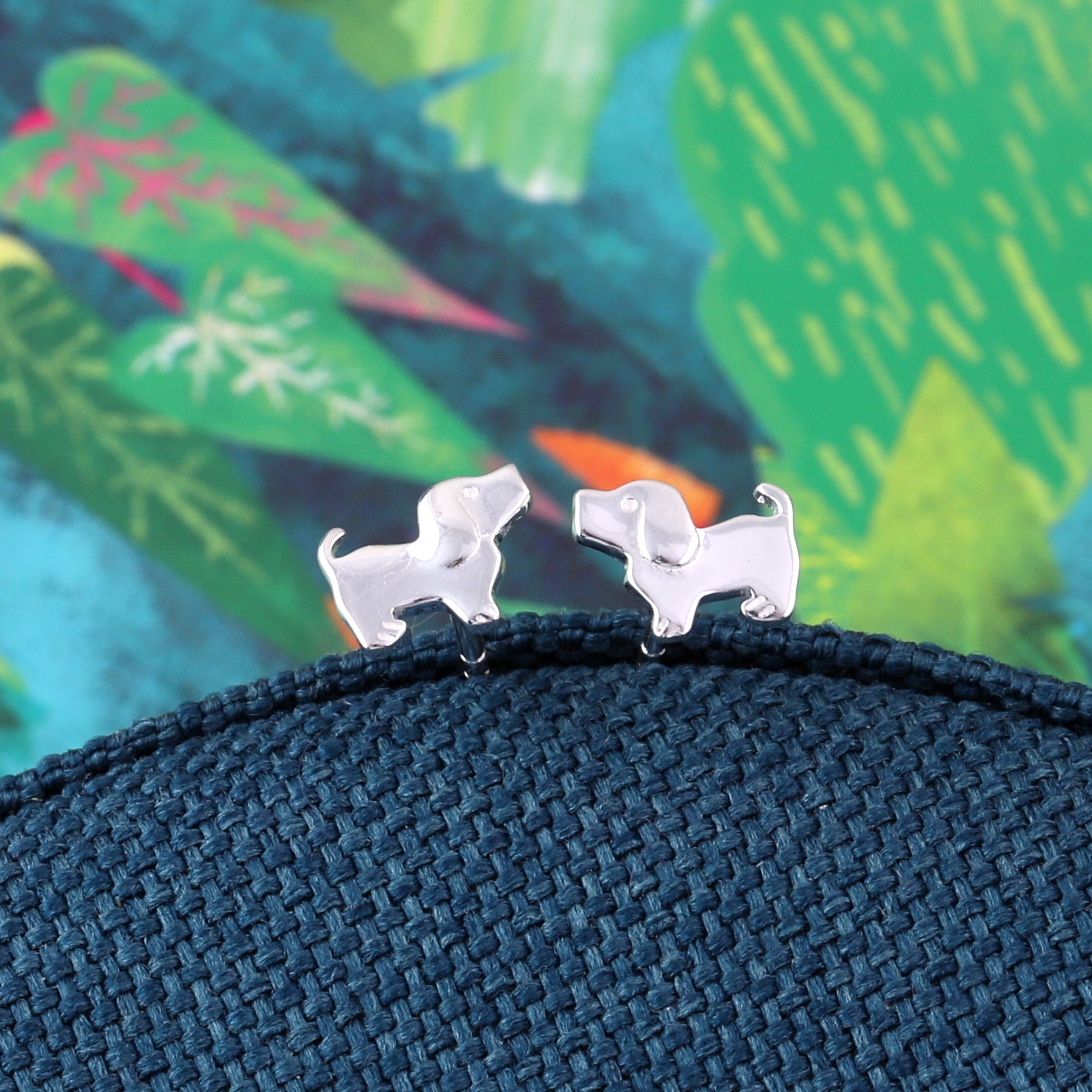 Our sterling silver dainty dog stud earrings are made with sterling silver and make an adorable accessory. These cute little pups are perfect for any pet lover, dog sitter or dog walker and the design is ideal to represent any canine. Made in the classic stud style, these dog ear studs are perfect for wearing to work or school.