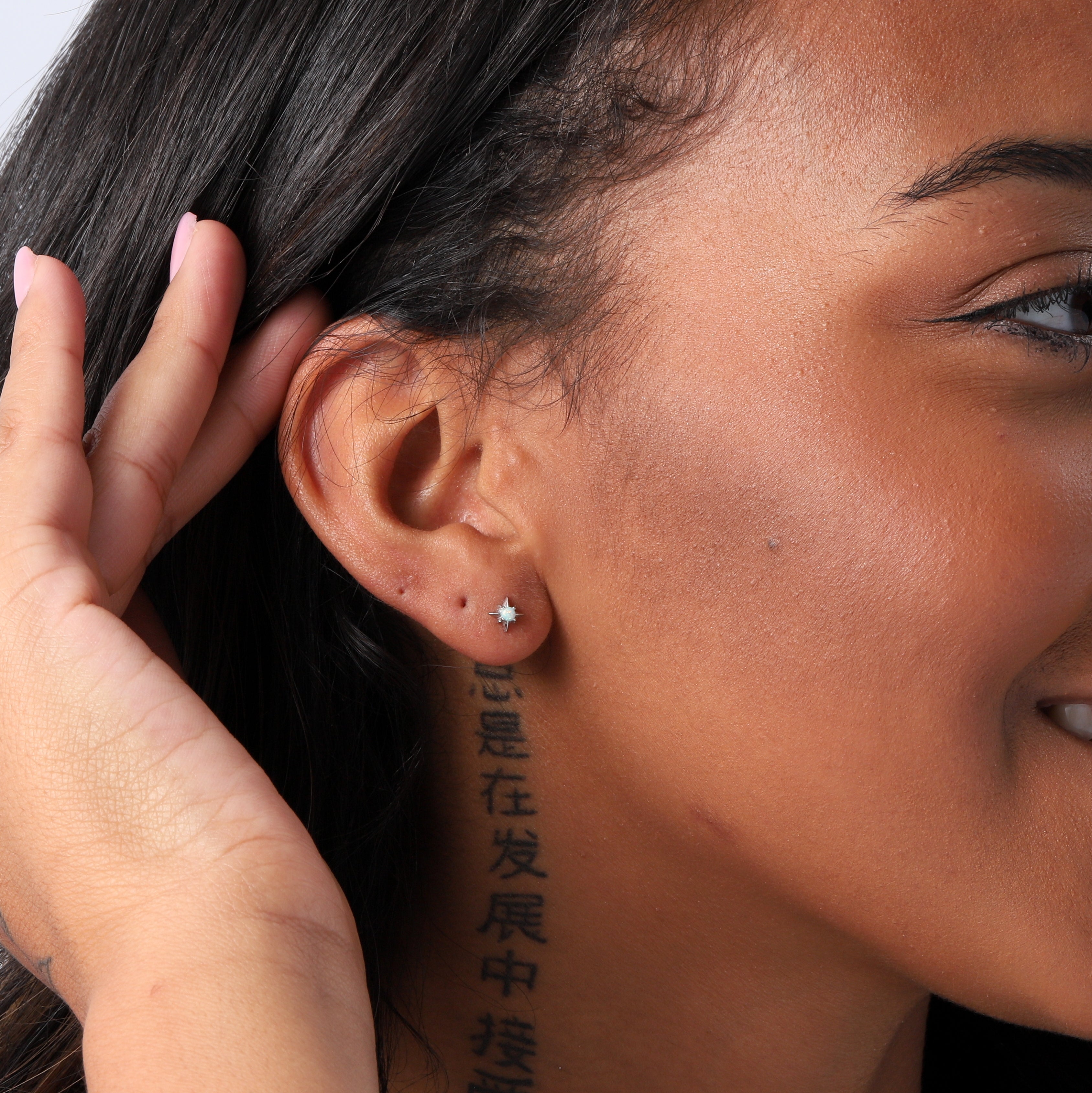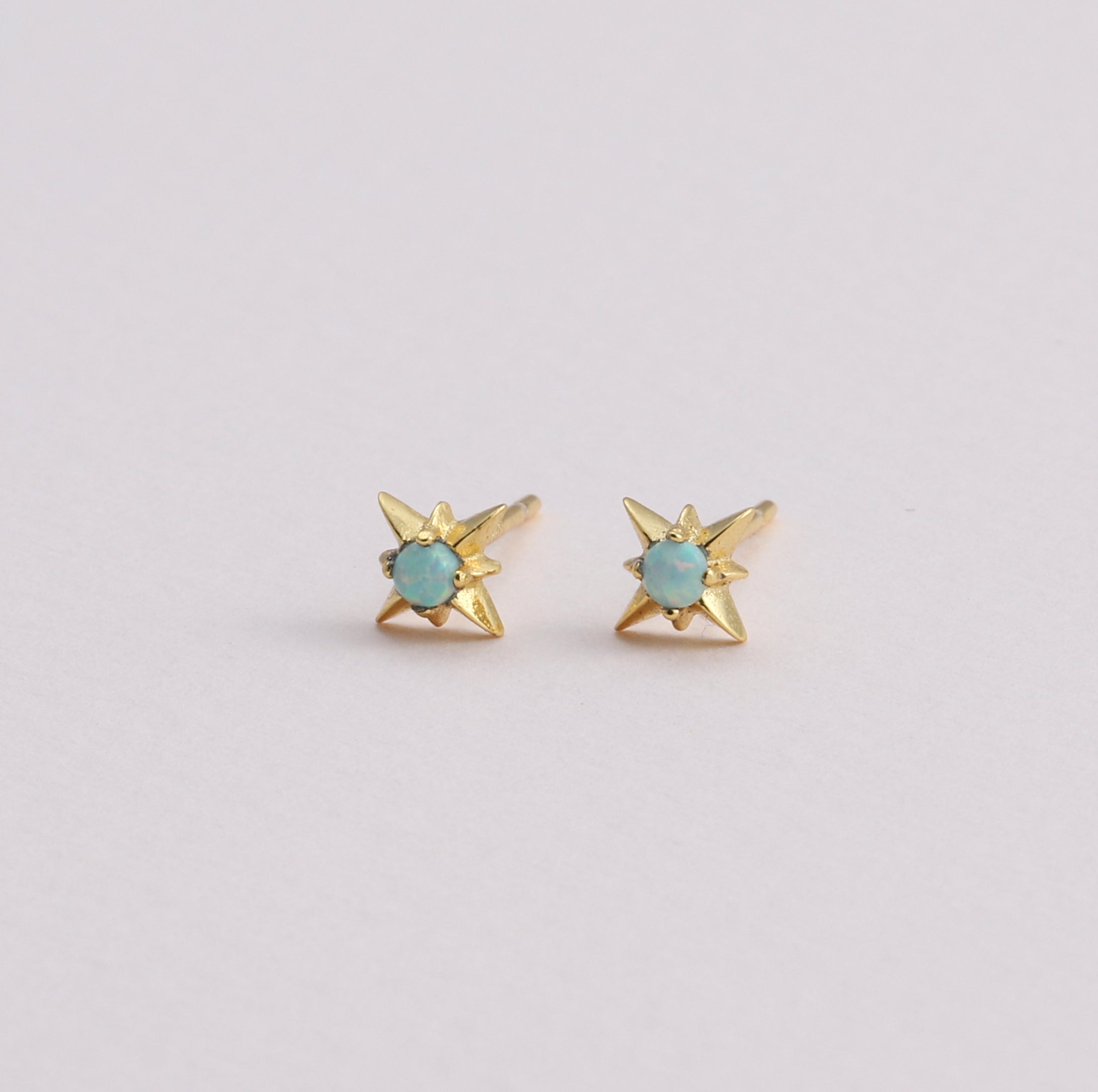 A charming and cute pair of sparkle star studs with a small gem stone in the center. suitable for everyday wear.