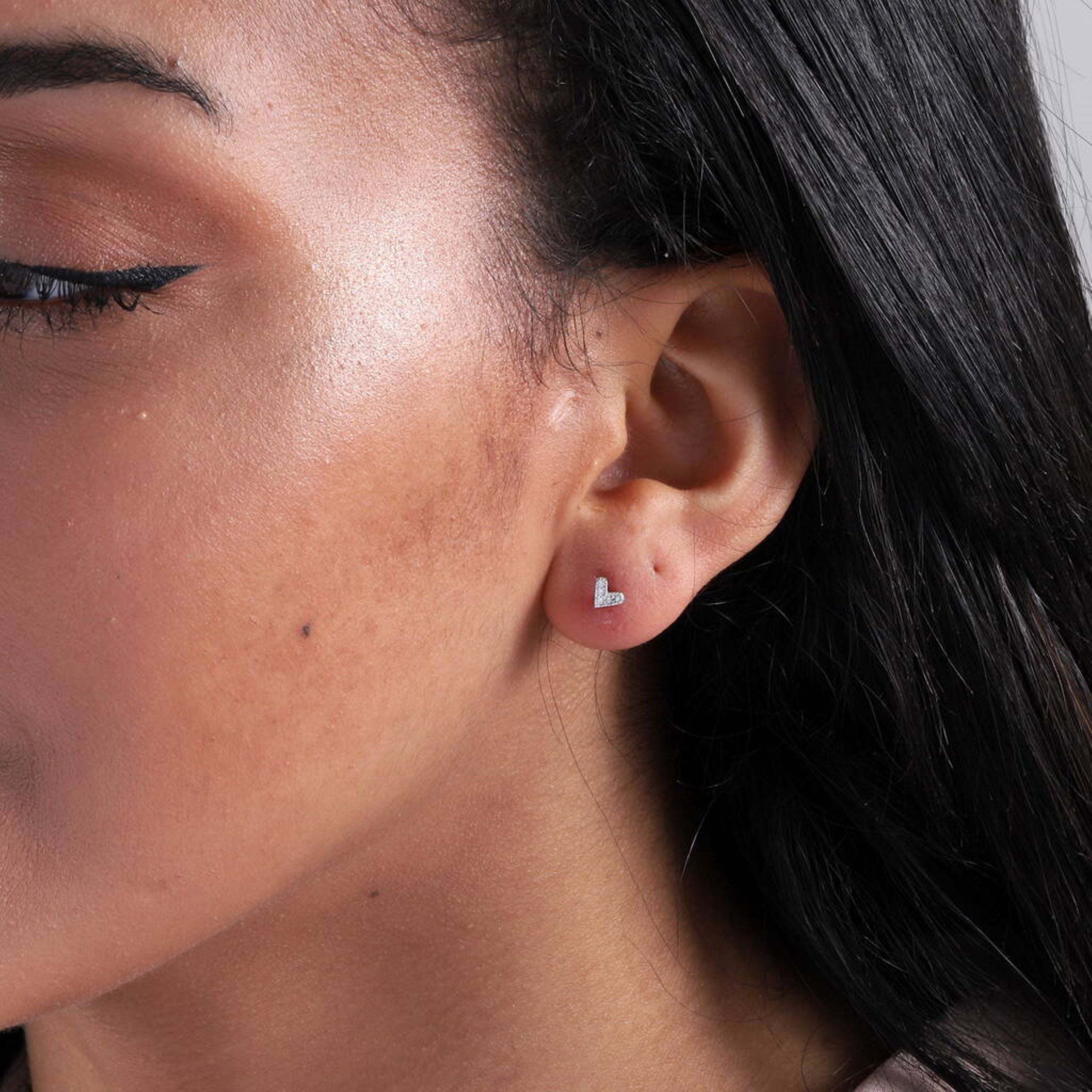 A versatile gift option- sterling silver sparkly heart stud earrings presented on an "always" message card and in a drawstring bag.