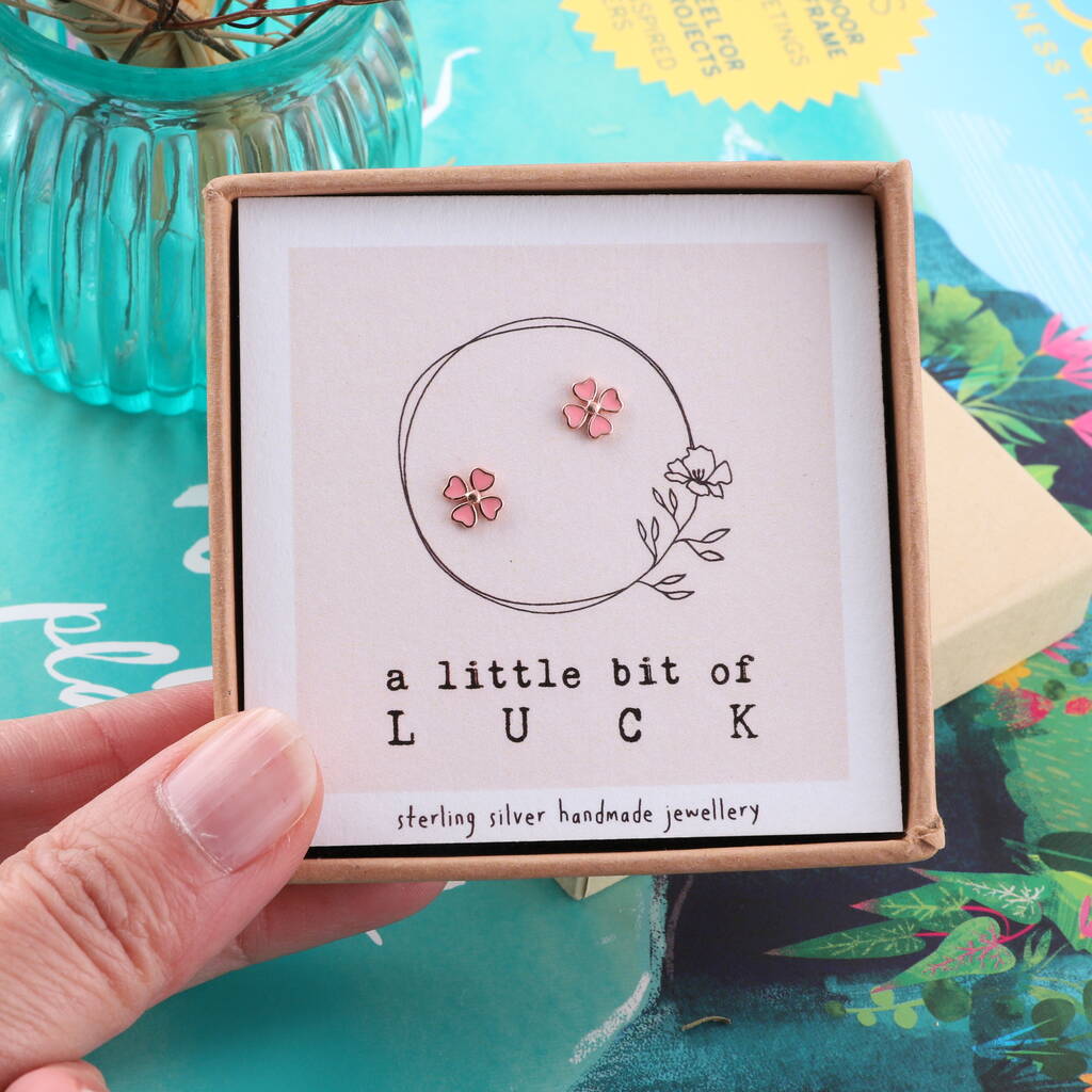A gorgeous gift of sterling silver pink four leaf clover earrings, perfect to send 'a little bit of luck' to a special person in your life.