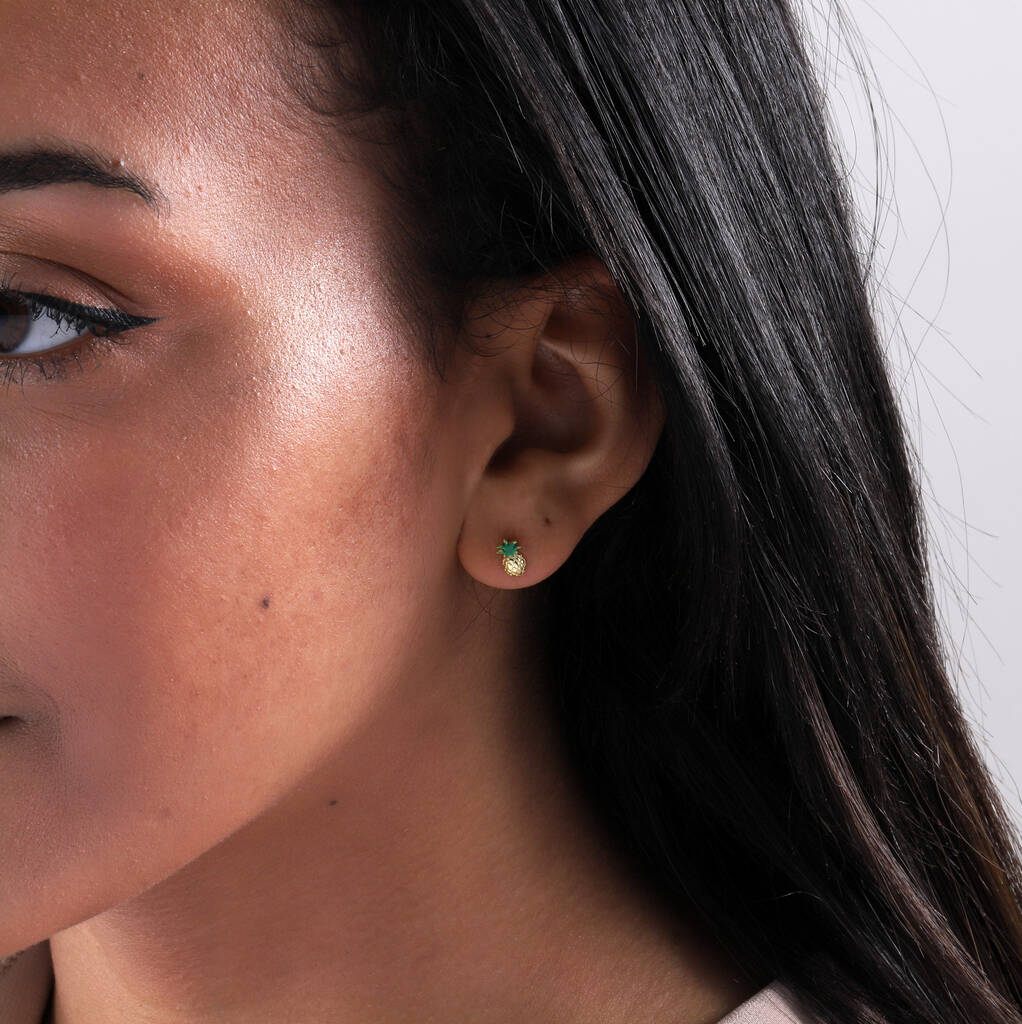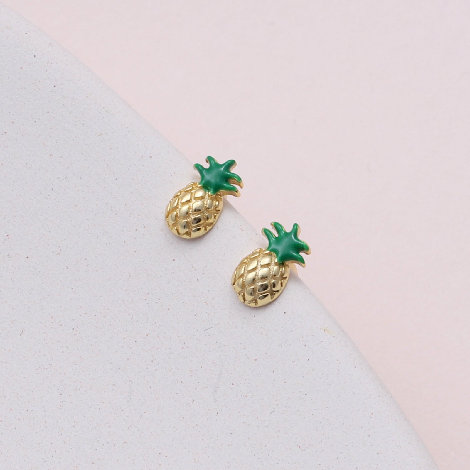 Fun sweet little enamel pineapple earrings, a lovely way to add a pop of colour to any outfit