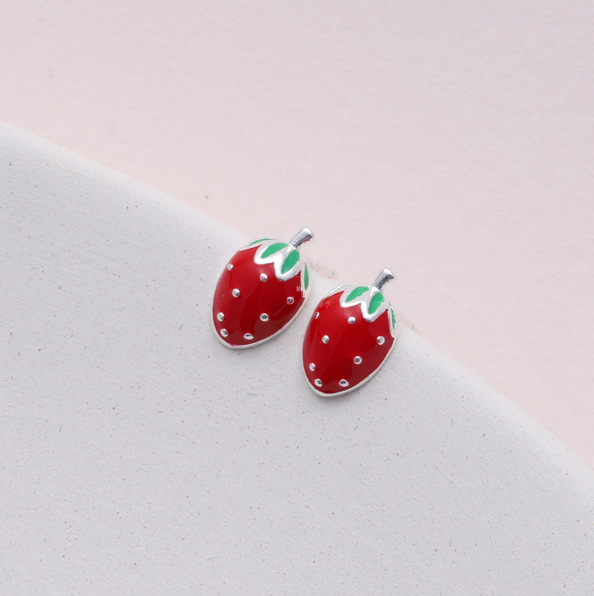 Adorable little enamel strawberry earrings, the perfect accessory to pair with any outfit