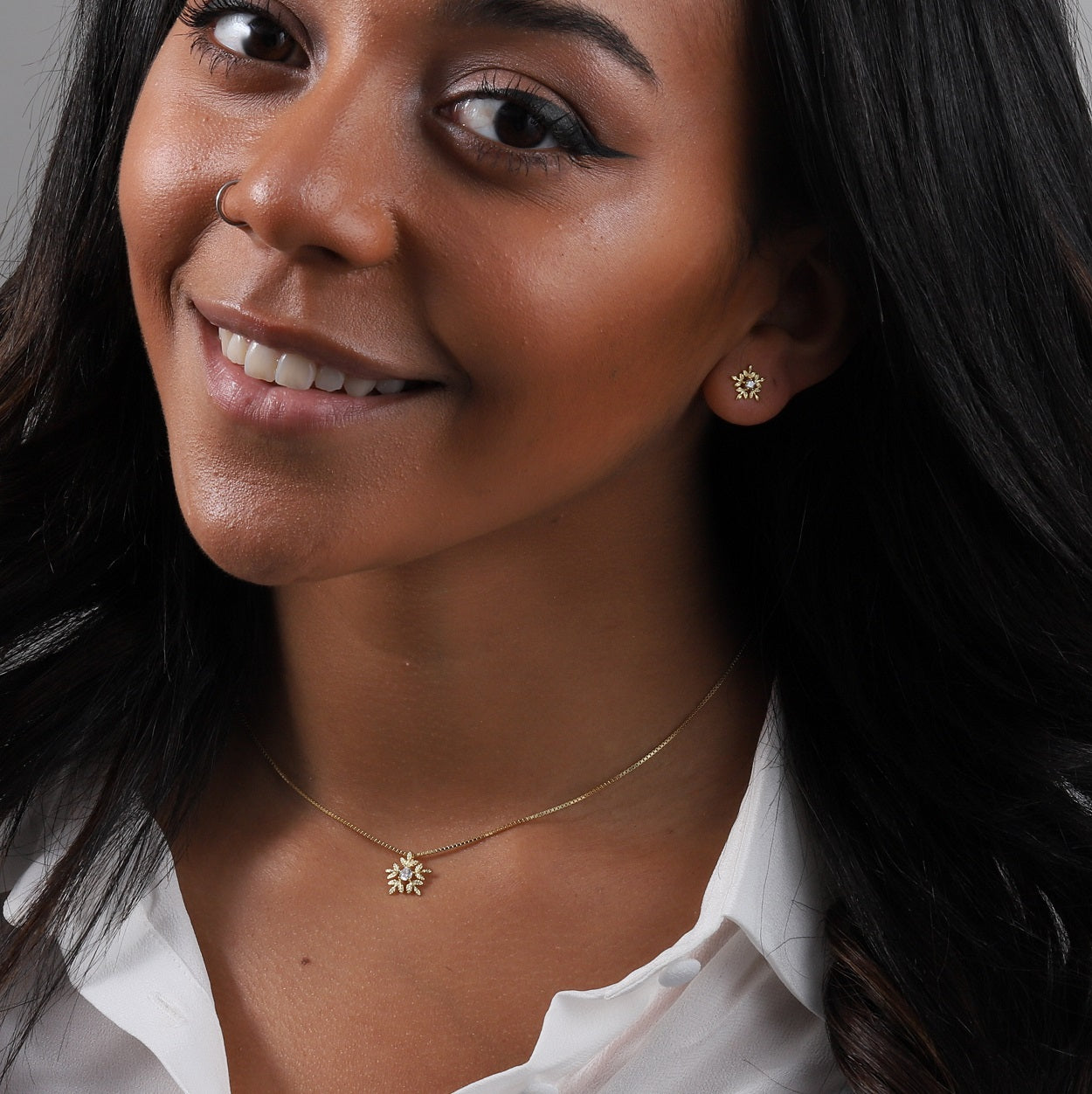 Sterling Silver Glistening Snowflake Studs Or Necklace
