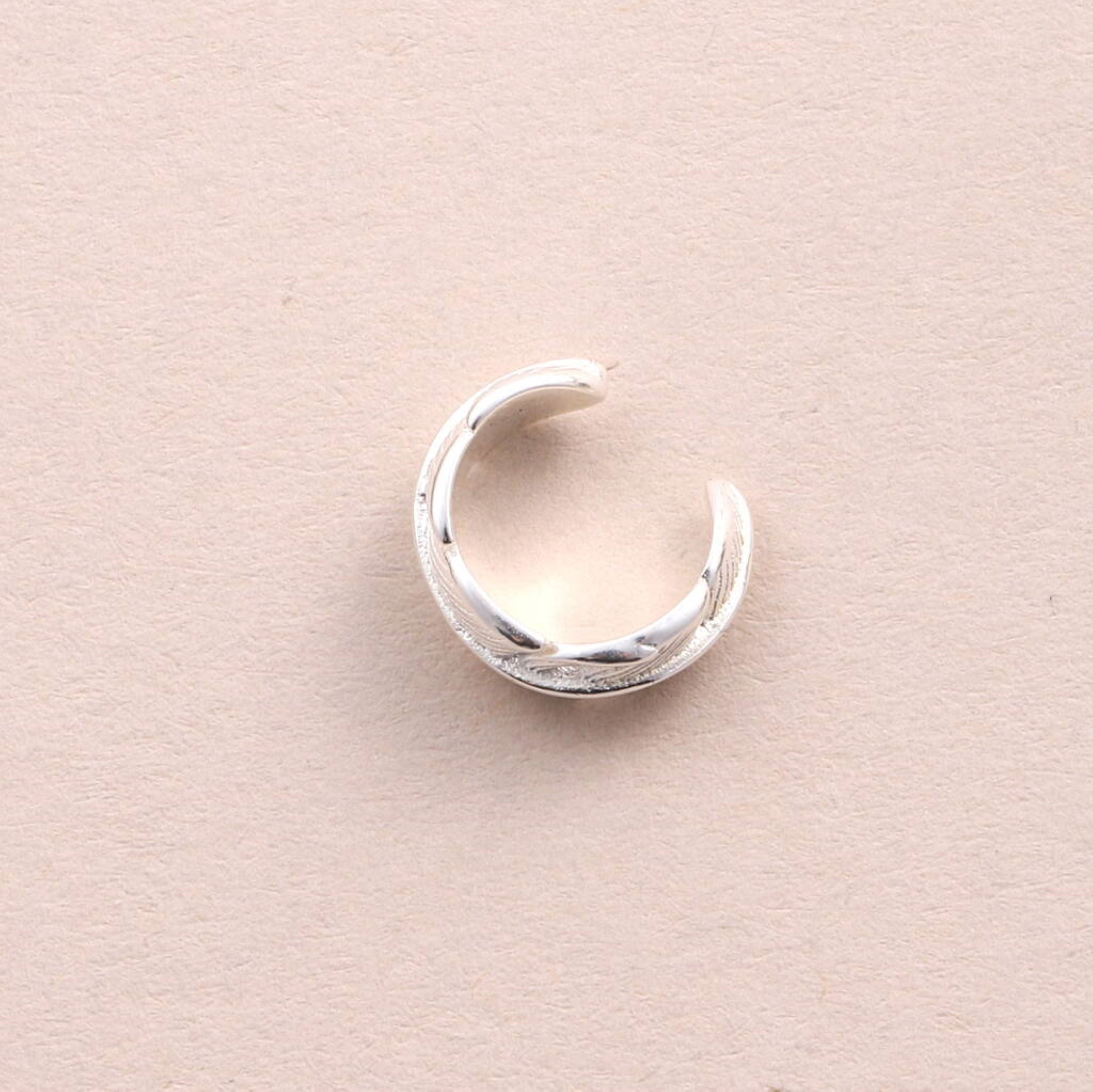 A great sterling silver feather ear cuff. This single ear cuff doesn't require a piercing- simply position the ear cuff and place then gently squeeze close to secure. This cuff is perfect for wearing on its own or styling with other earrings.