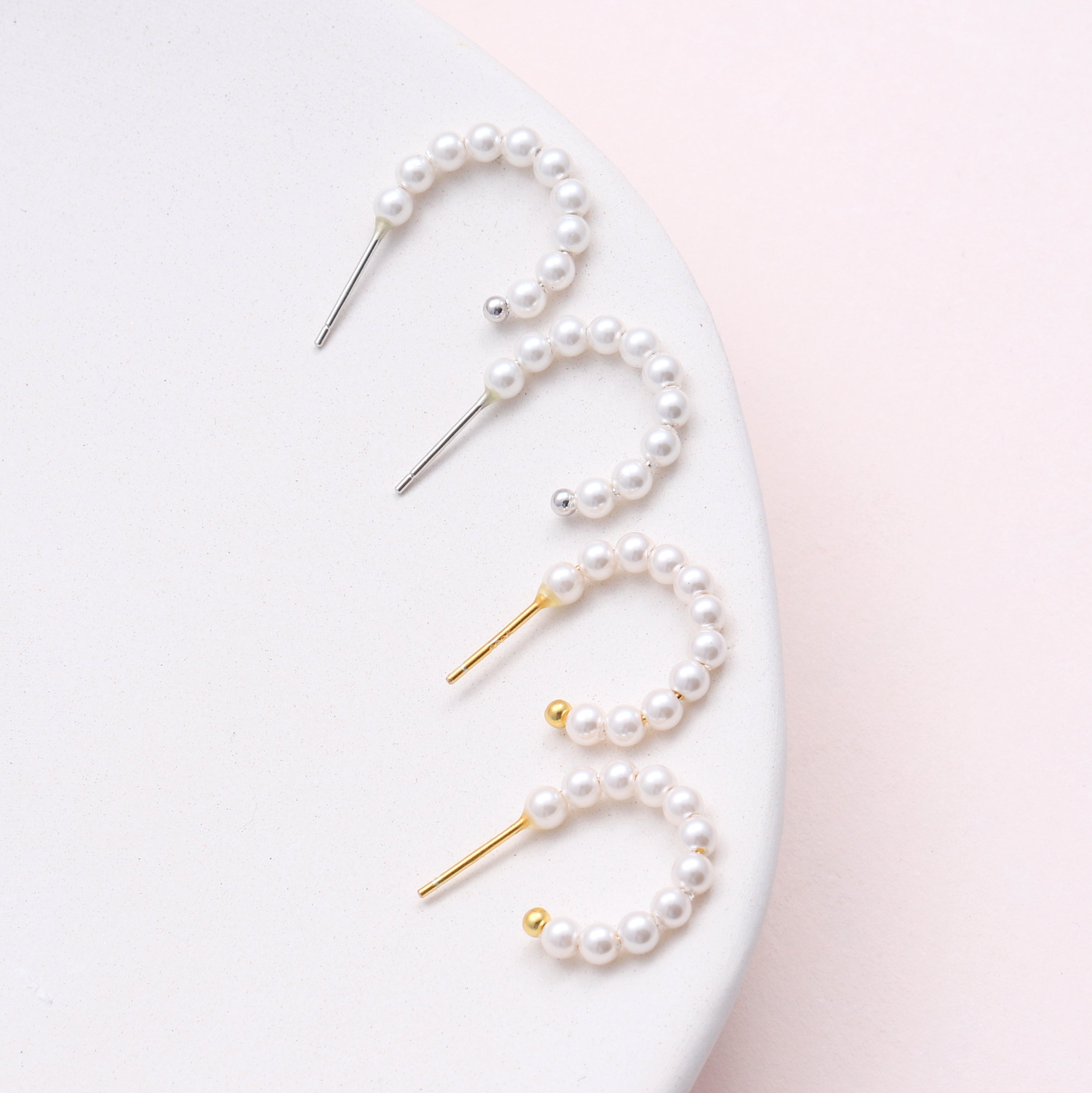 Beautiful pearl stud earrings, that give the illusion of wearing hoops.