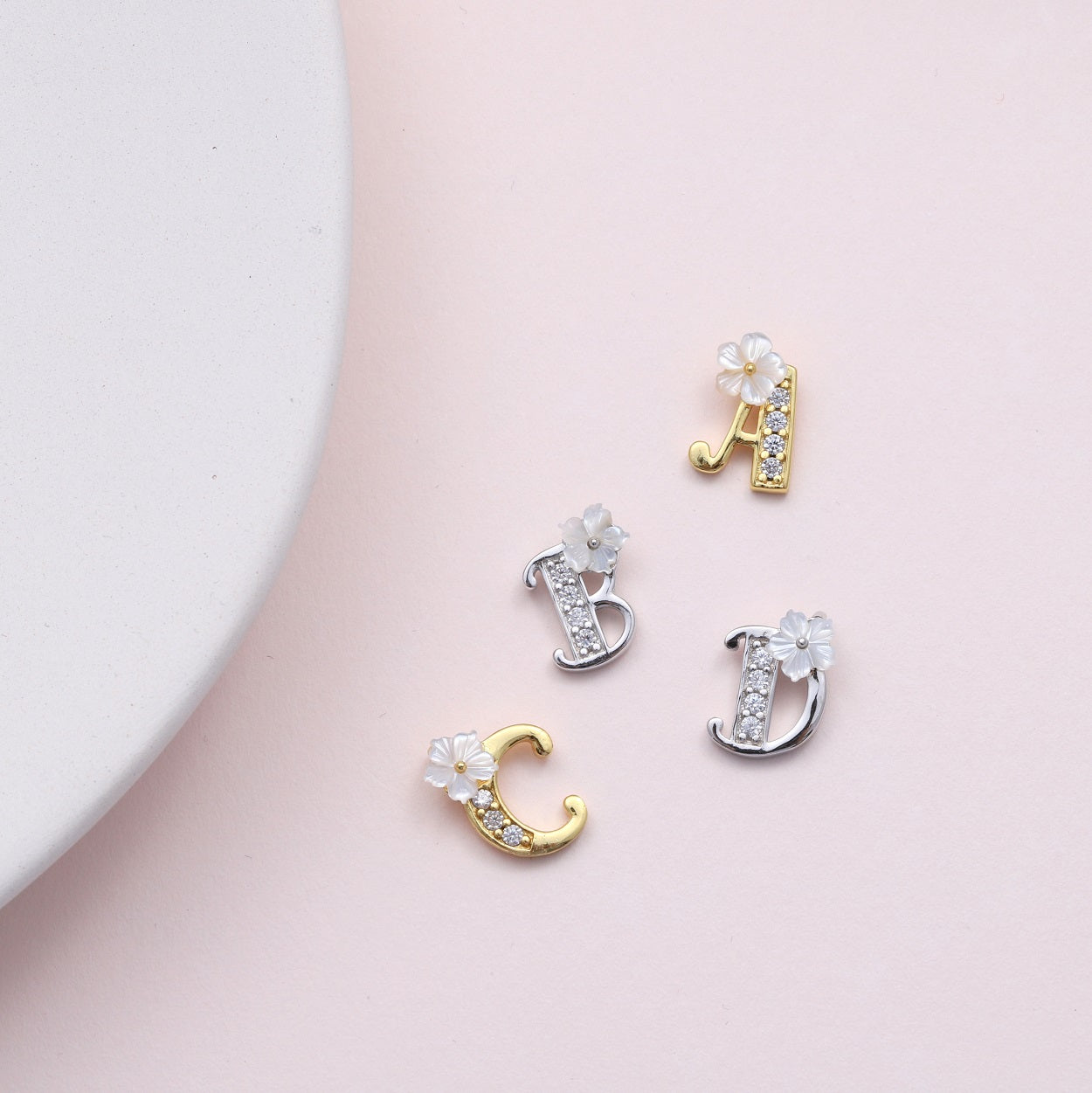 Sterling silver floral alphabet necklace or earring studs ABCD