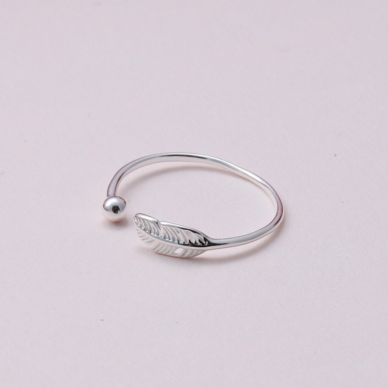 A subtle but beautiful open feather ring, a great accessory to pair with any outfit or style with other rings.