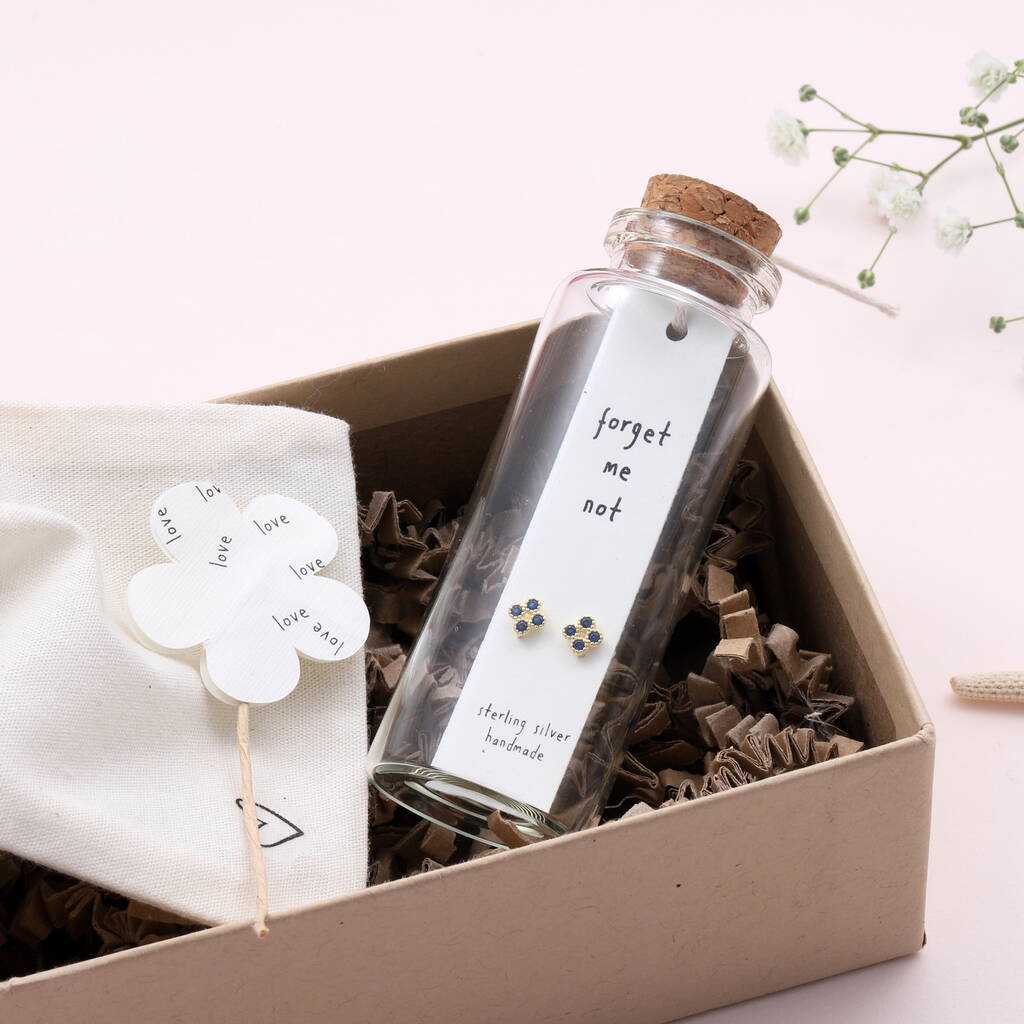 - The earrings are packaged in a glass bottle with a cotton bag and in a kraft gift box.